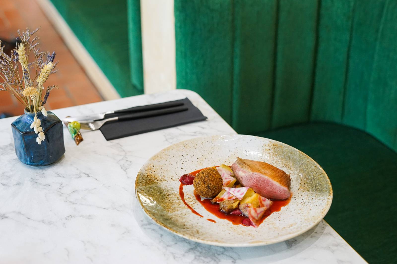 Des saveurs subtiles et harmonieuses dans une cadre verdoyant et chaleureux. Un bonheur des pupilles aux papilles.